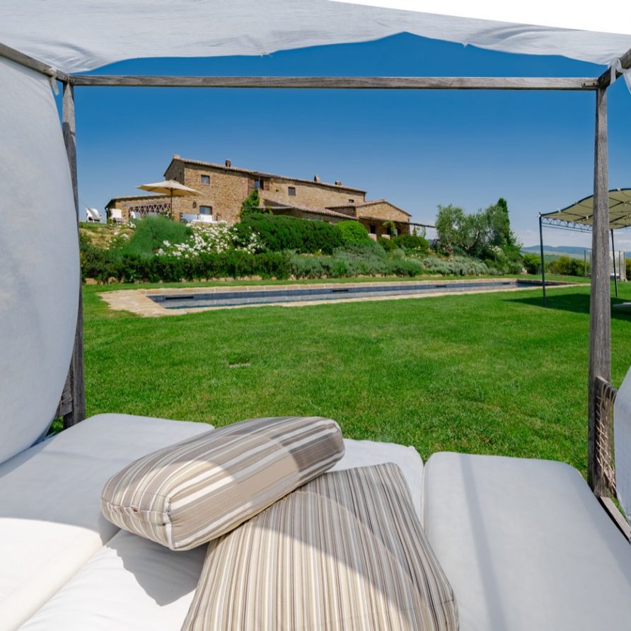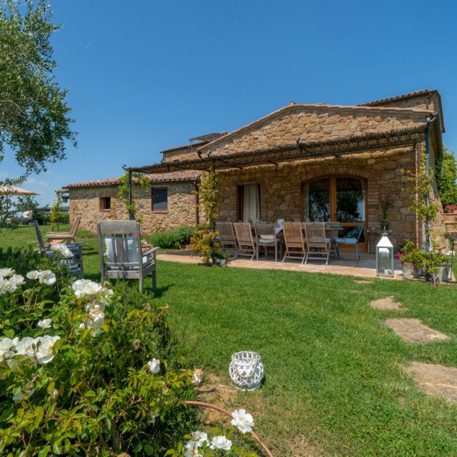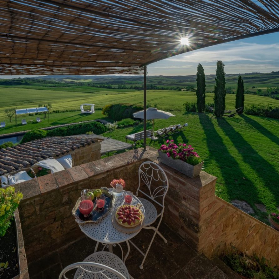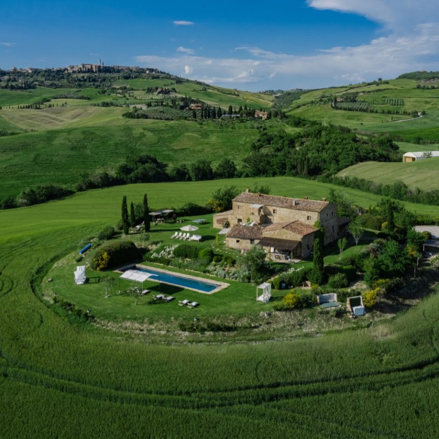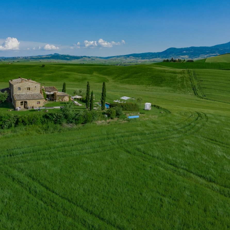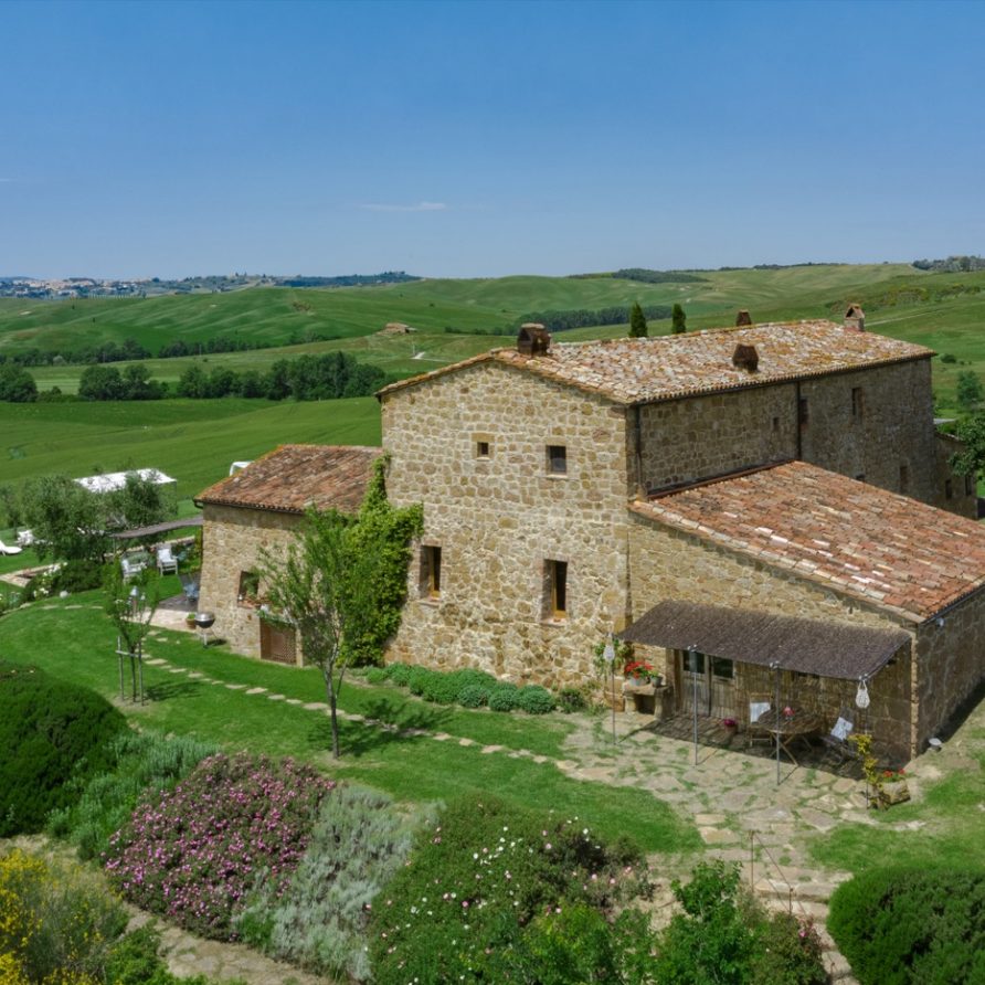 Near the delightful village of Pienza, surrounded by the sublime greenery of Val d’Orcia, there is a beautiful villa, which welcomes its guests in an exclusive atmosphere of familiarity and peace. The house is part of the natural surrounds and is inseparable from them. The countryside is part of the villa. The elegant property, situated on the top of a hill, with 6 bedrooms and ensuite bathrooms, dominates the surrounding area and offers a magnificent
