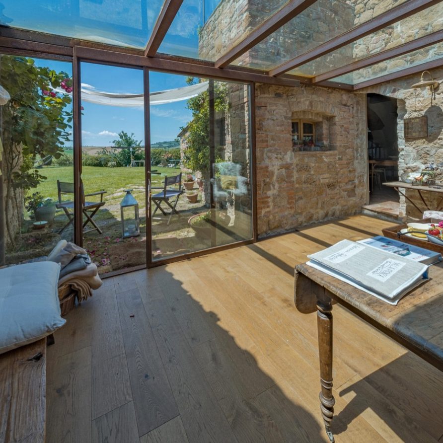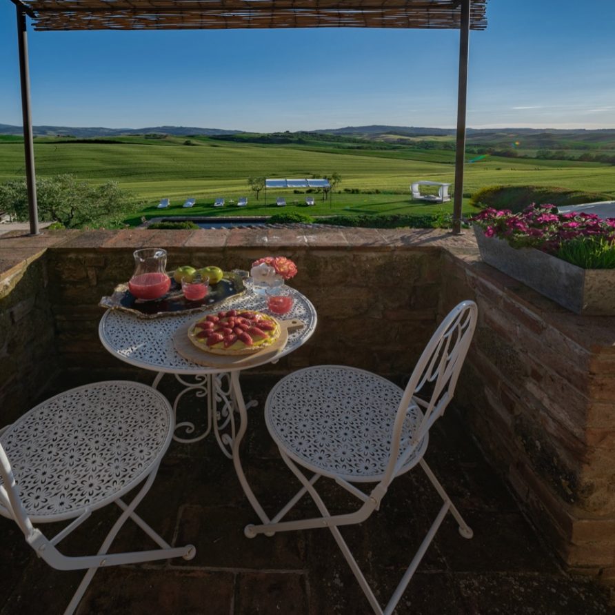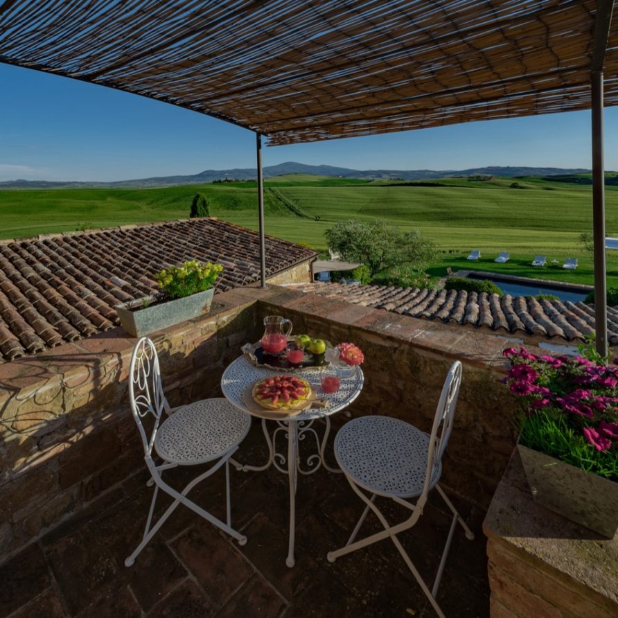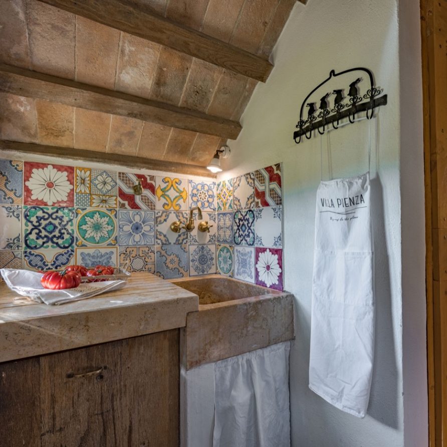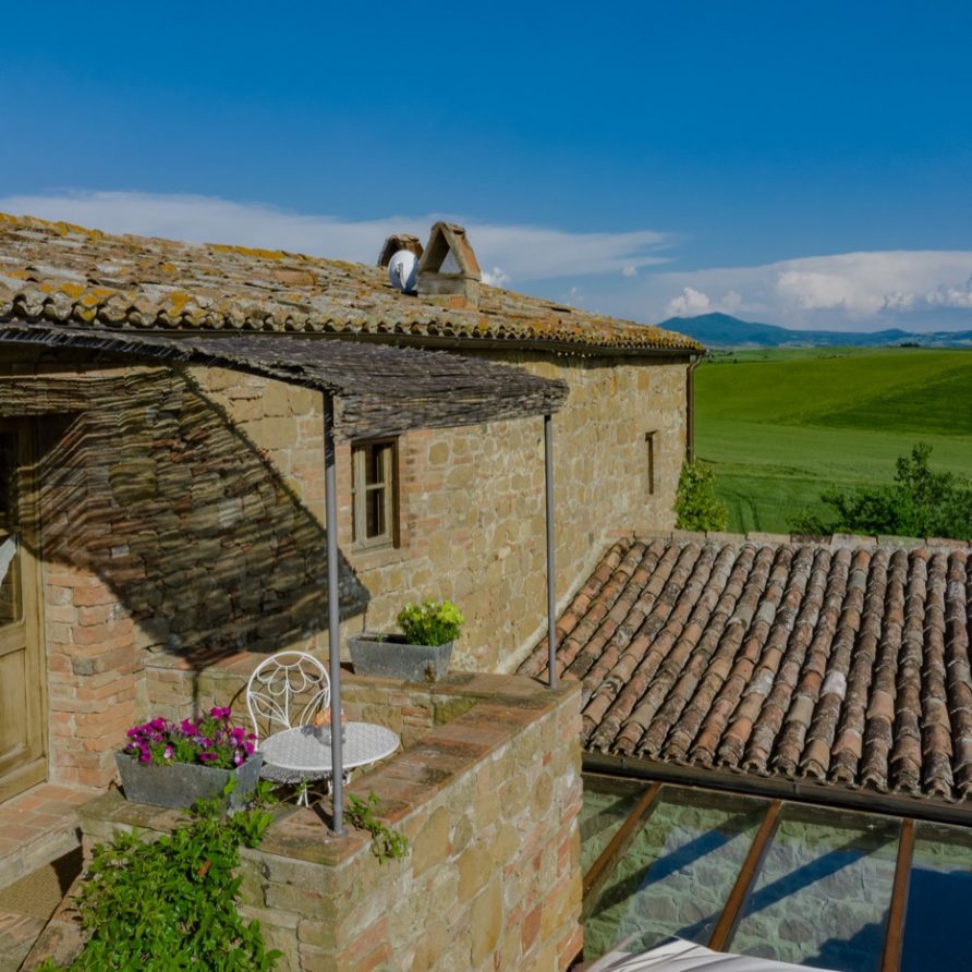 panorama over the Tuscan hills and a 360 degree view over Pienza, which seems to be within reach. All the different parts of the villa are rich with Tuscan tradition.