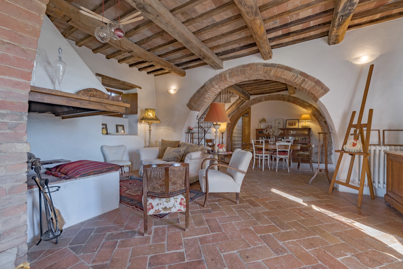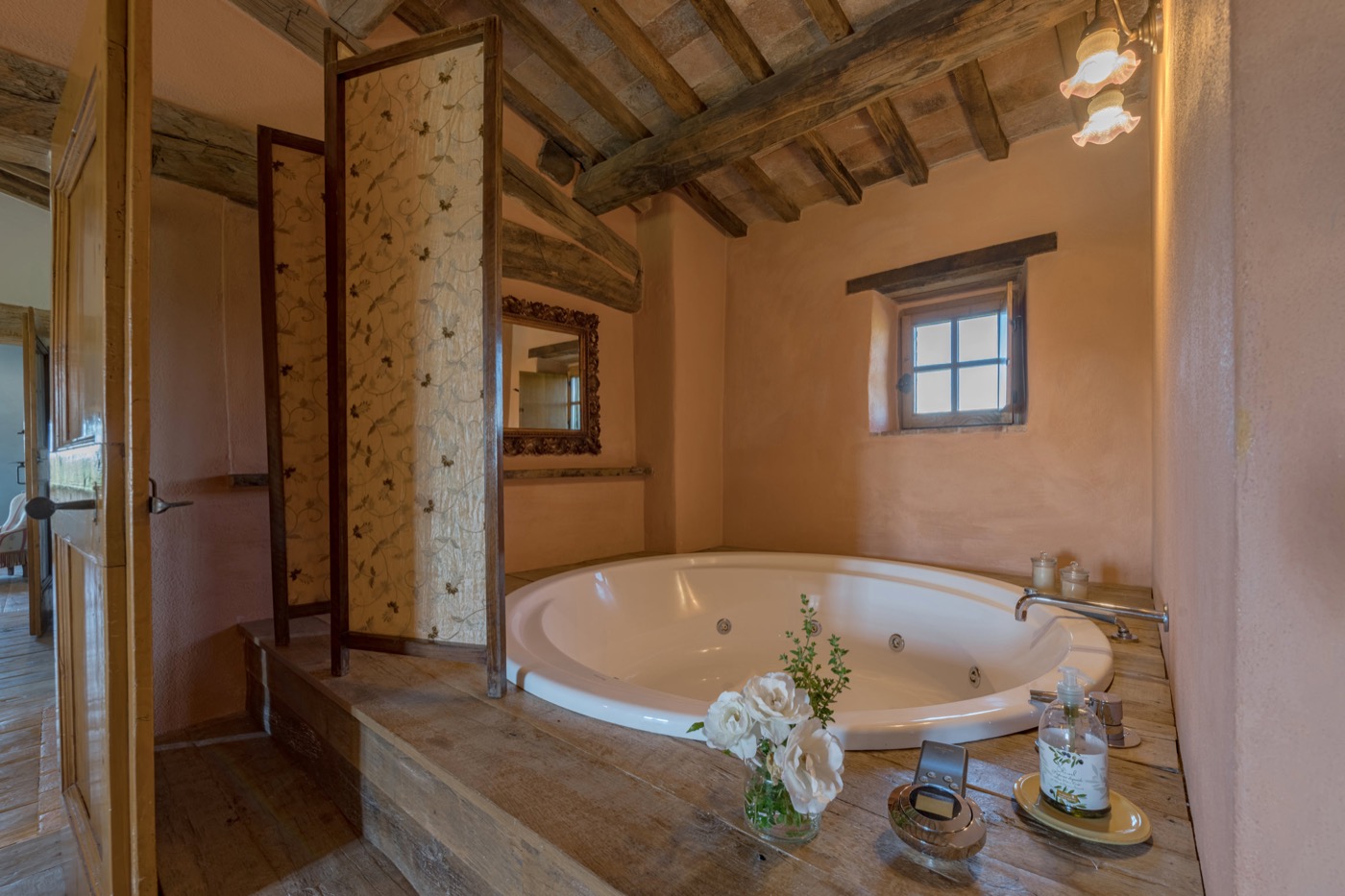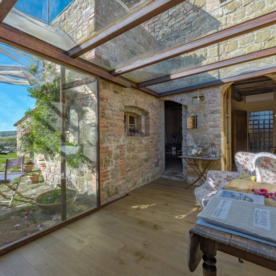 panorama over the Tuscan hills and a 360 degree view over Pienza, which seems to be within reach. All the different parts of the villa are rich with Tuscan tradition.