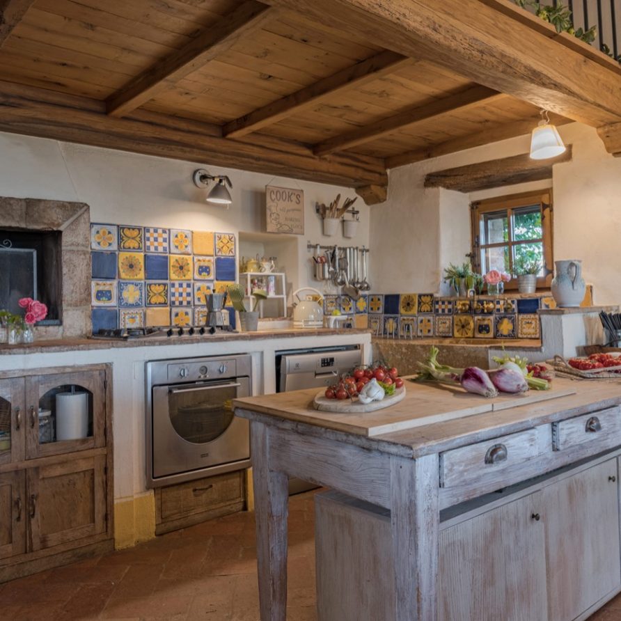 The property was in ruins when the owners bought it and they built the house according to their very personal style: a mixture of comfort and local architecture with artisan touches, like antique wooden oak floors, hand painted tiles. All the inside furnishings have been created to assure you an elegant atmosphere, but at the same