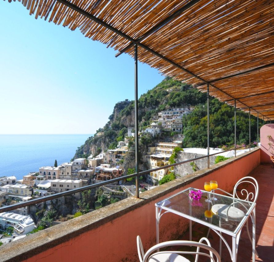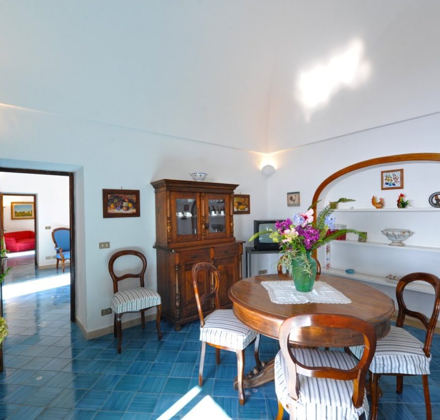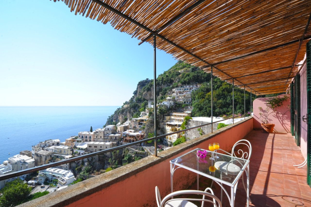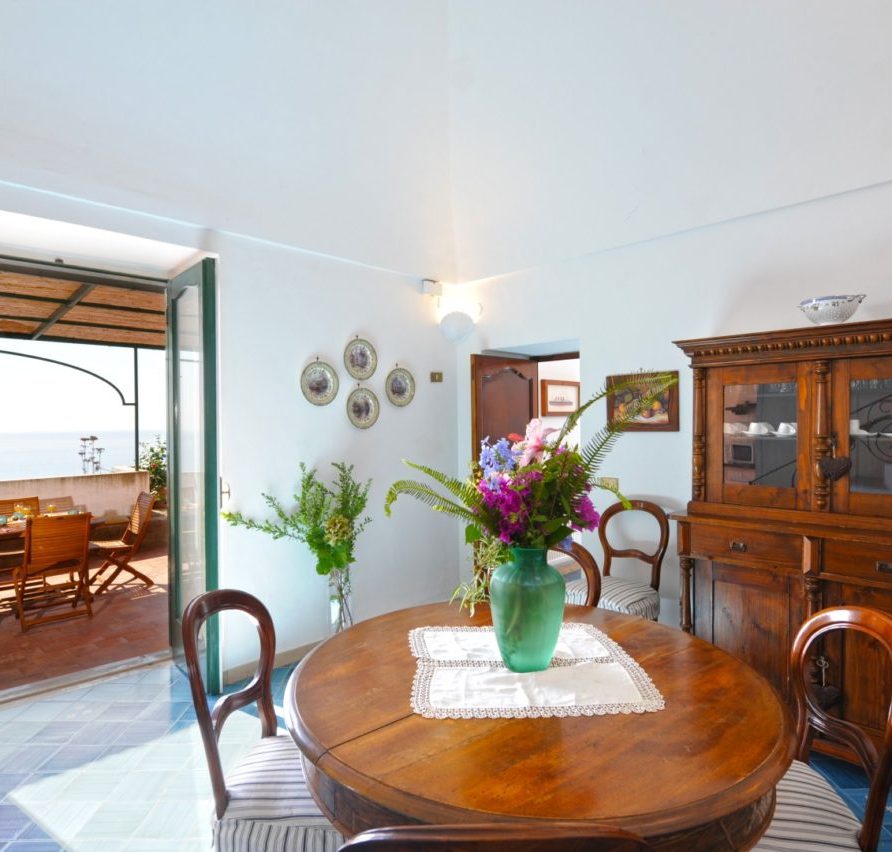 Rosa is a two storey villa, built in 19th century and recently renovated, with external walls 80 cm thick and painted in pink, 3 terraces, beautifully planted with bougainvillea, roses and other flowering plants, and a magnificent view of the town and the sea. The Villa measures 150 square meters; the three terraces together measure more than 110 square meters. Beside the Villa is an accessible vegetable garden of almost 300 square meters, cultivated with seasonal vegetables (tomatoes, lettuce, potatoes, etc.); if available, you can get some of them free from the farmer; at the end of the vegetable garden there is a big fig tree. A stairway of stone steps (typical of Positano) takes you to Villa Rosa, starting from Viale Pasitea, the main street in Positano, and going up through the oldest part of Positano; there are 85 steps leading to the entrance of the villa.