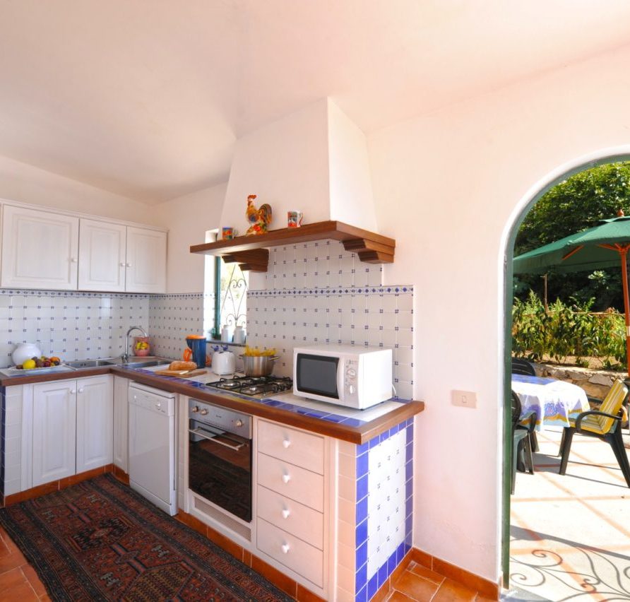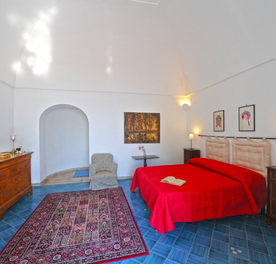 Villa Rosa has vaulted ceilings and tile floors; part of the furnishing is antique; some pieces are very precious – consequently the Villa is not suitable for children under 12 years of age. First floor The entrance takes you through onto a large panoramic terrace, part of which, shaded by a pergola, is suitable for dining with a wooden table seating 6/10 people. Three large rooms have direct access to the terrace through glass doors and wooden shutters: a double bedroom, a living room with satellite TV and a fireplace, and a dining room for 6/8 people; from the terrace, through a glass door, you enter a large, fully equipped kitchen with dishwasher. The double bedroom leads onto the bathroom and the dressing room. The dining room has direct access to the kitchen, which in turn leads through a glass door onto a panoramic side terrace bordering the vegetable garden cultivated with seasonal vegetables; the terrace is suitable for dining with a wooden table seating 6/8 people. A small room containing the boiler and the washing machine has direct access to the terrace. Second floor An internal staircase leads you from the dining room to the second floor. The second floor contains two large double bedrooms, with thick curtains, high capacity wardrobes, antique furniture, pictures and mirrors, as well as a large bathroom with shower. Each double bedroom has direct access to a panoramic balcony above the large terrace below.