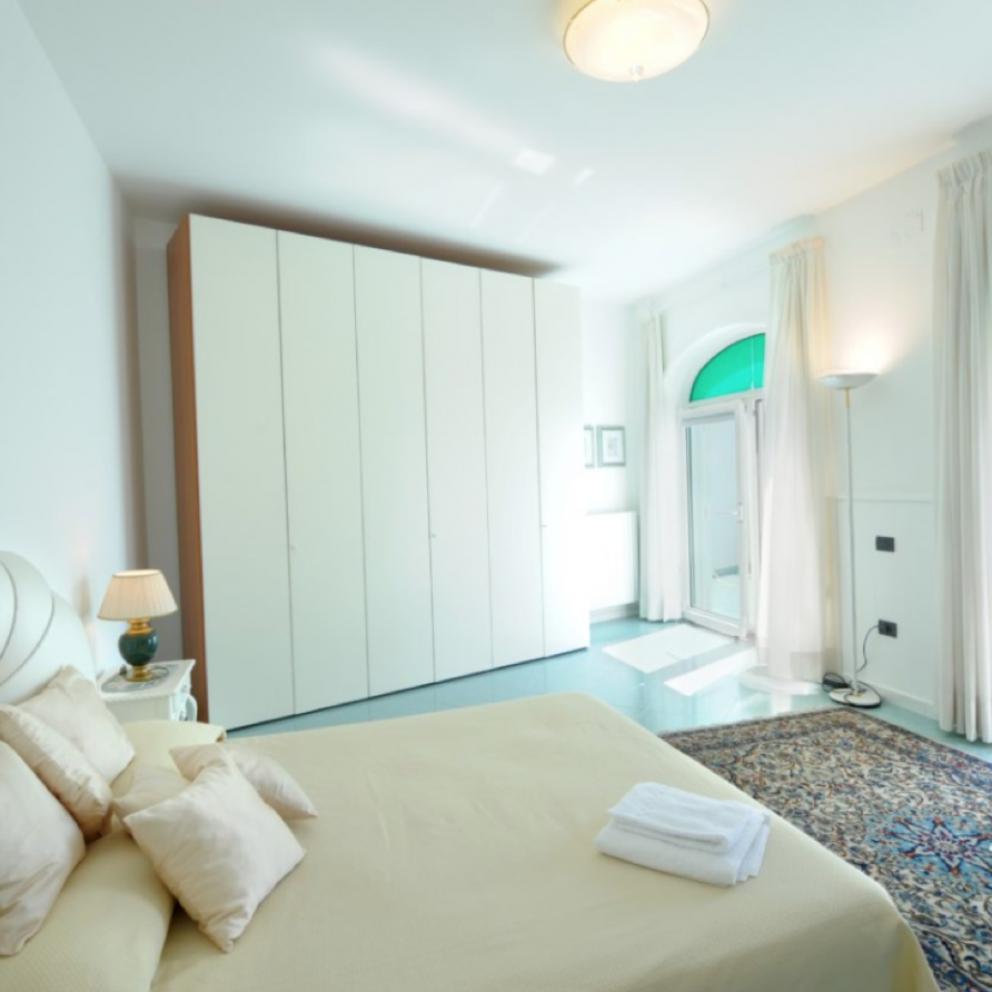 Villa Sirena residence is constructed on several levels: 19 steps lead to: The kitchen, furnished in excellent taste and with attention to detail; The kitchen leads to the living area containing a table and chairs in crystal, fireplace, sofa and the latest accessories (USB, TV 48 inch,DVD, Stereo) The villa has 4 double bedrooms, and in the true Amalfi tradition, each bedroom has an annexed terrace with a splendid view of the sea. – The first bedroom is located on the ground floor with annexed terrace overlooking the sea and an en suite bathroom containing a shower cubicle. Along the corridor there is another bathroom directly opposite to a laundry area. Another 22 steps takes you to the upper floor where you can find the following rooms: – 1 double bedroom with a view of the sea – 1 twin-bedded bedroom with a cot and baby changing equipment – 1 bathroom with shower cubicle – 1 double bedroom with en-suite bathroom, shower cubicle, Jacuzzi and access to another terrace The various levels of the villa, including the external levels, can all be reached by elevator.