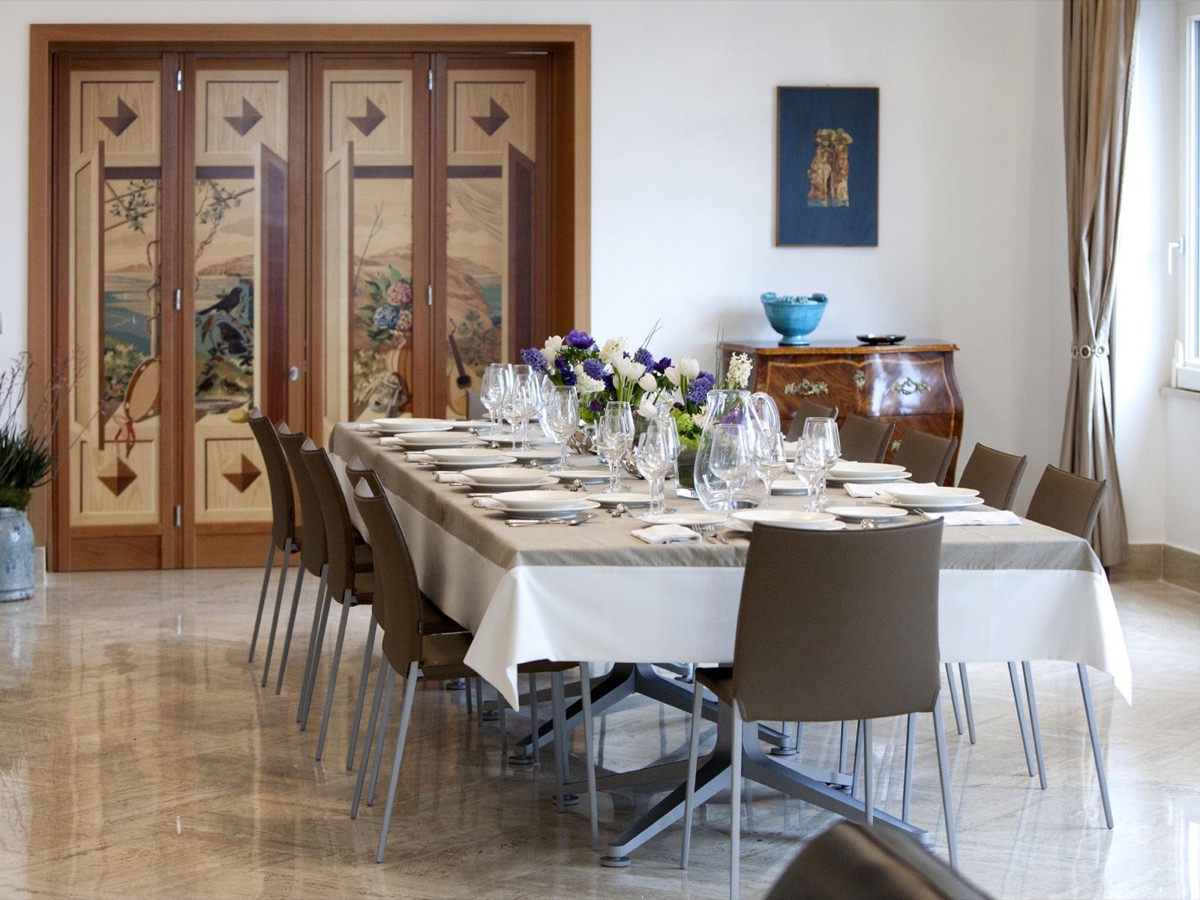 The kitchen is not only eating … it is much, much more. Cooking is about being together, it’s poetry. Villa has a spacious room equipped with all kinds of appliances, utensils and dishes to prepare delicious lunches and dinners to be enjoyed in the large dining room.
