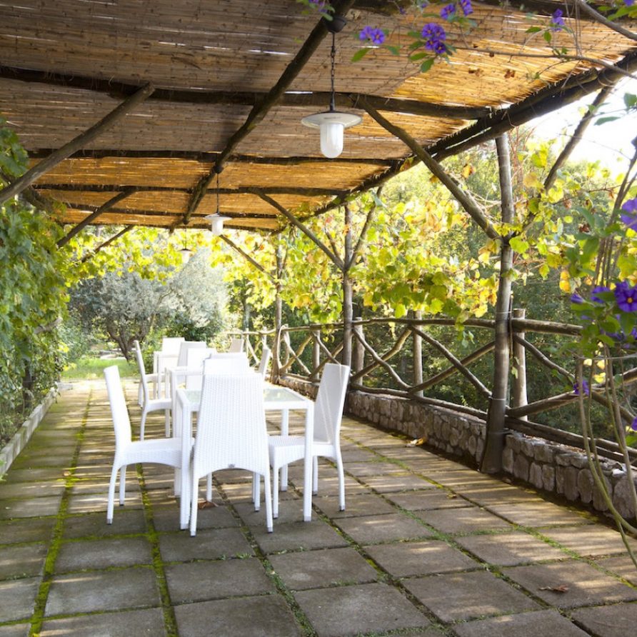 On the ground floor there is a large living area-dining room with satellite Tv, a fireplace, a corner bar, a large kitchen, an office room and a toilette, while outside there is a pergola with tables, chairs and a wooden oven where you can prepare the typical Neapolitan pizza!