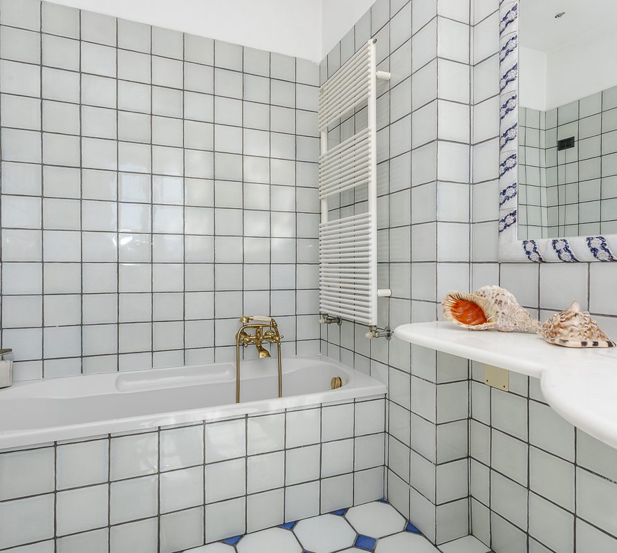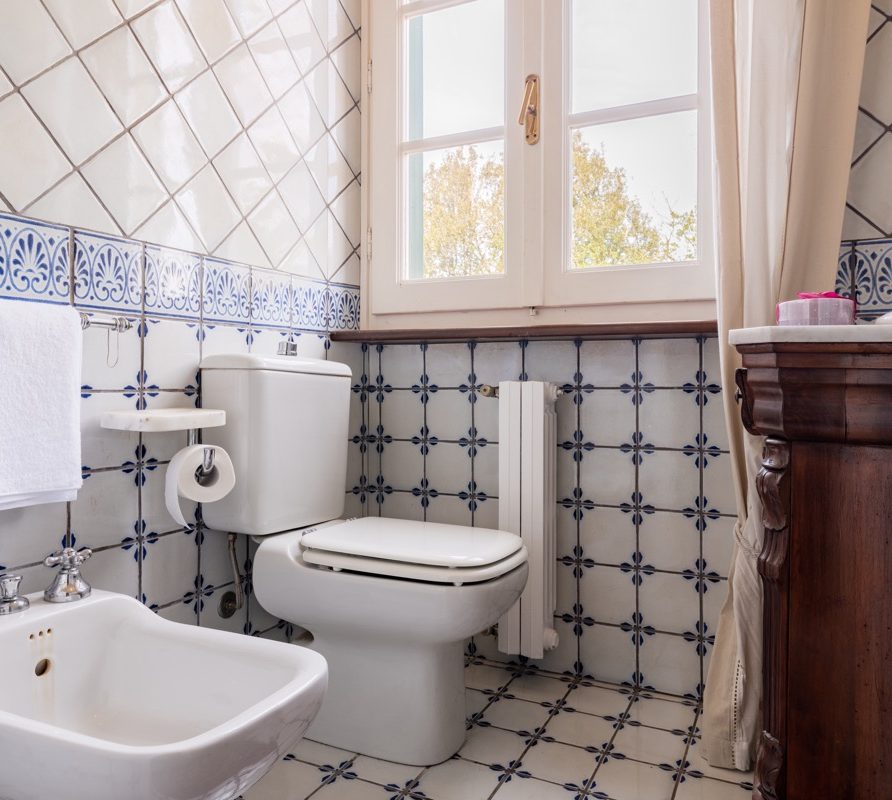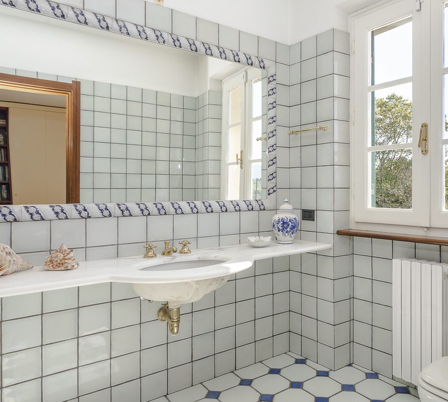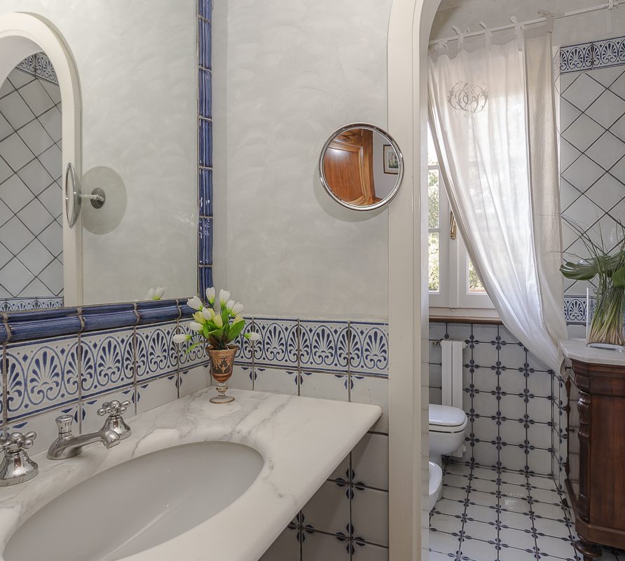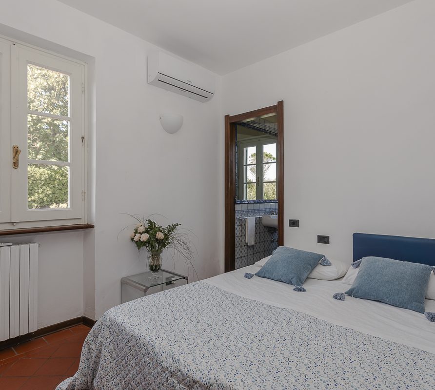 Also on the floor we find a double bedroom with private bathroom with shower. In this area also a bath service near the kitchen and a room with a single bed with private bathroom, possibly used by a maid or babysitter.