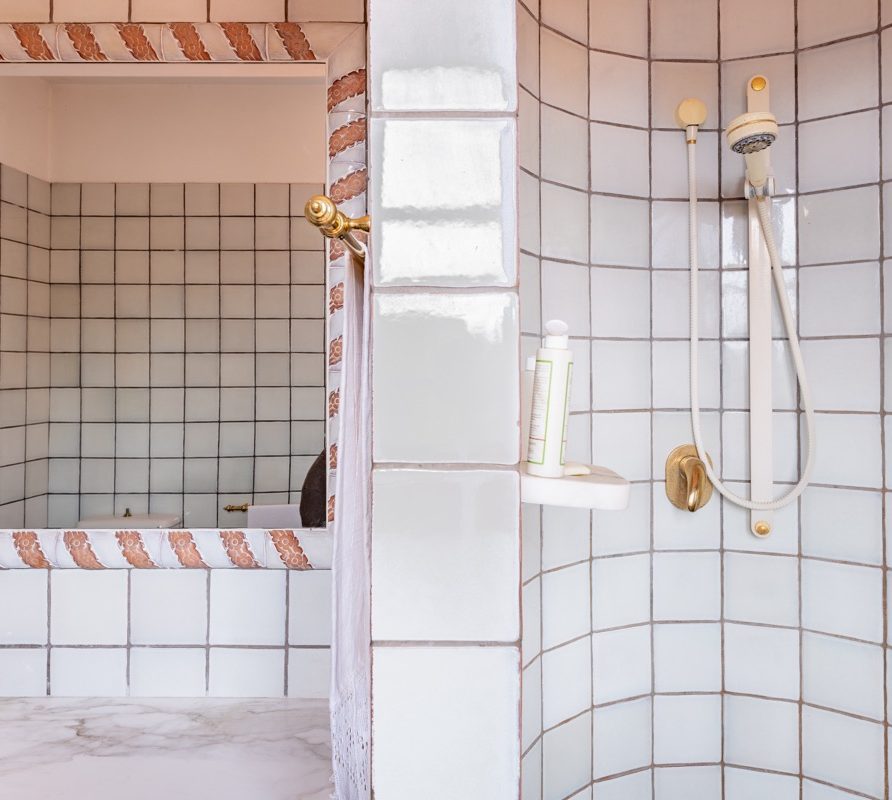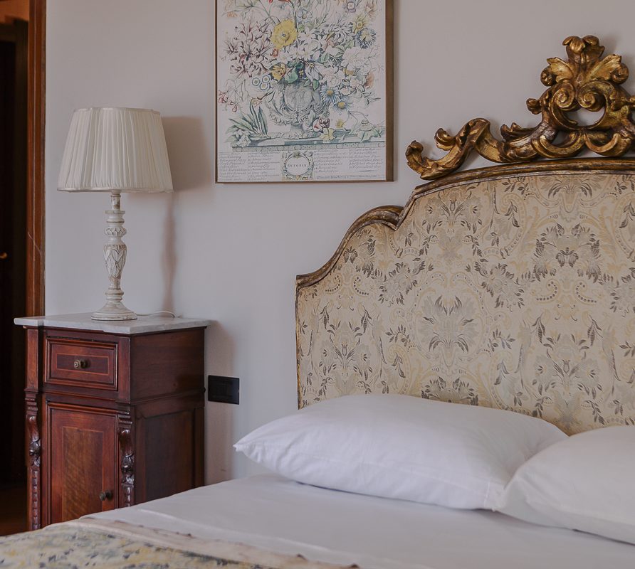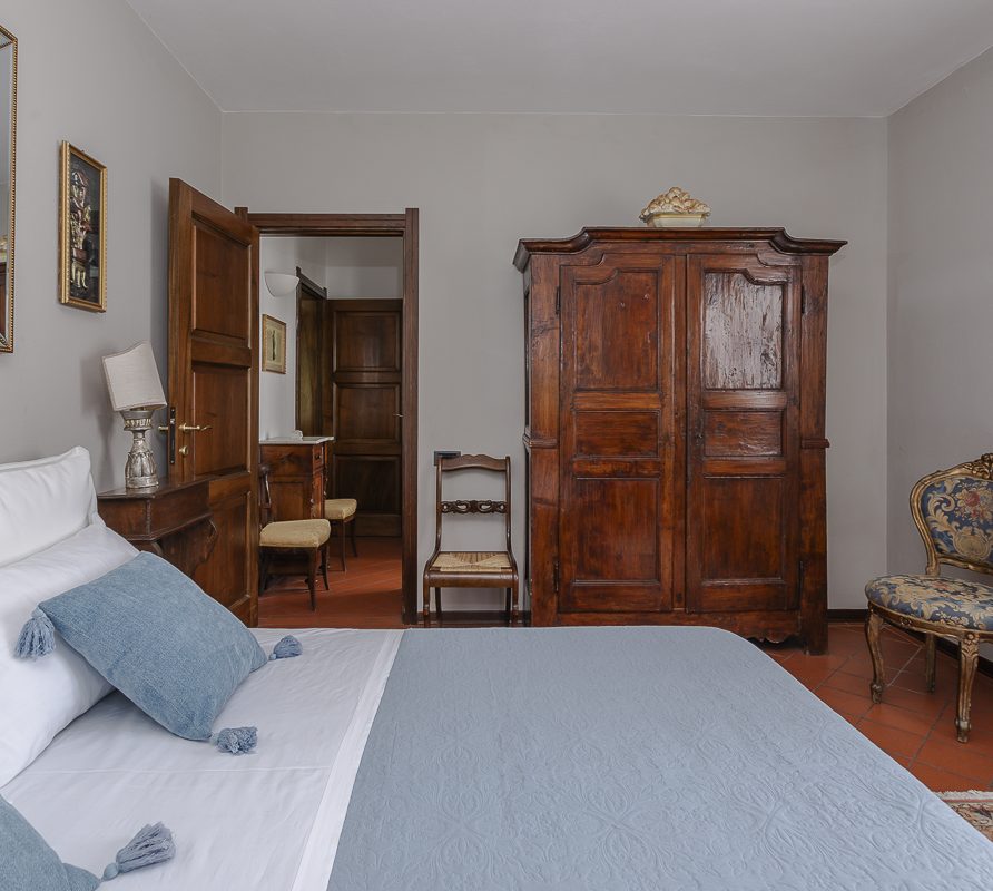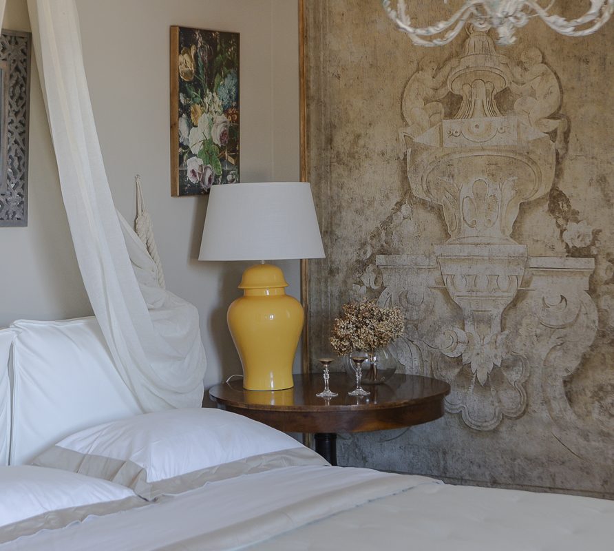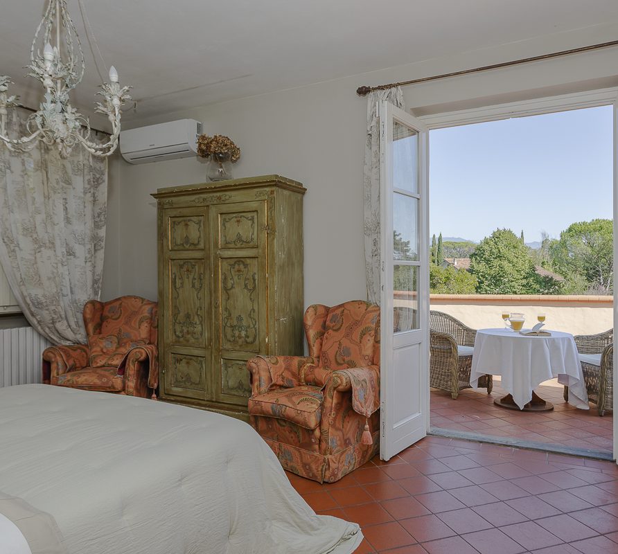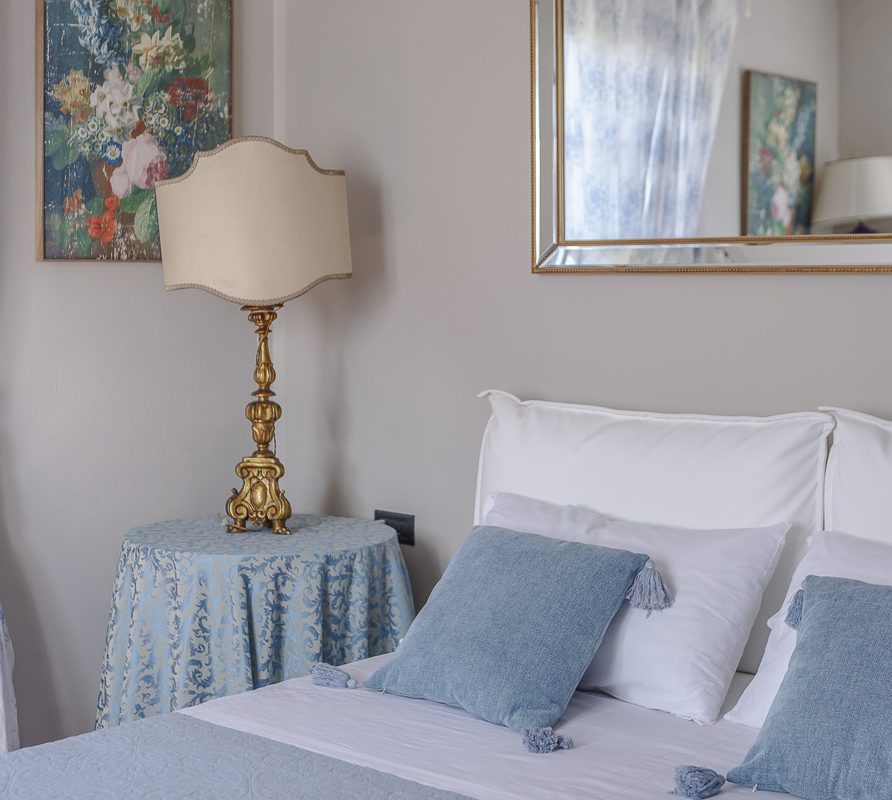 Yellow Room: Double bed overlooking the terrace. Private bathroom with shower.