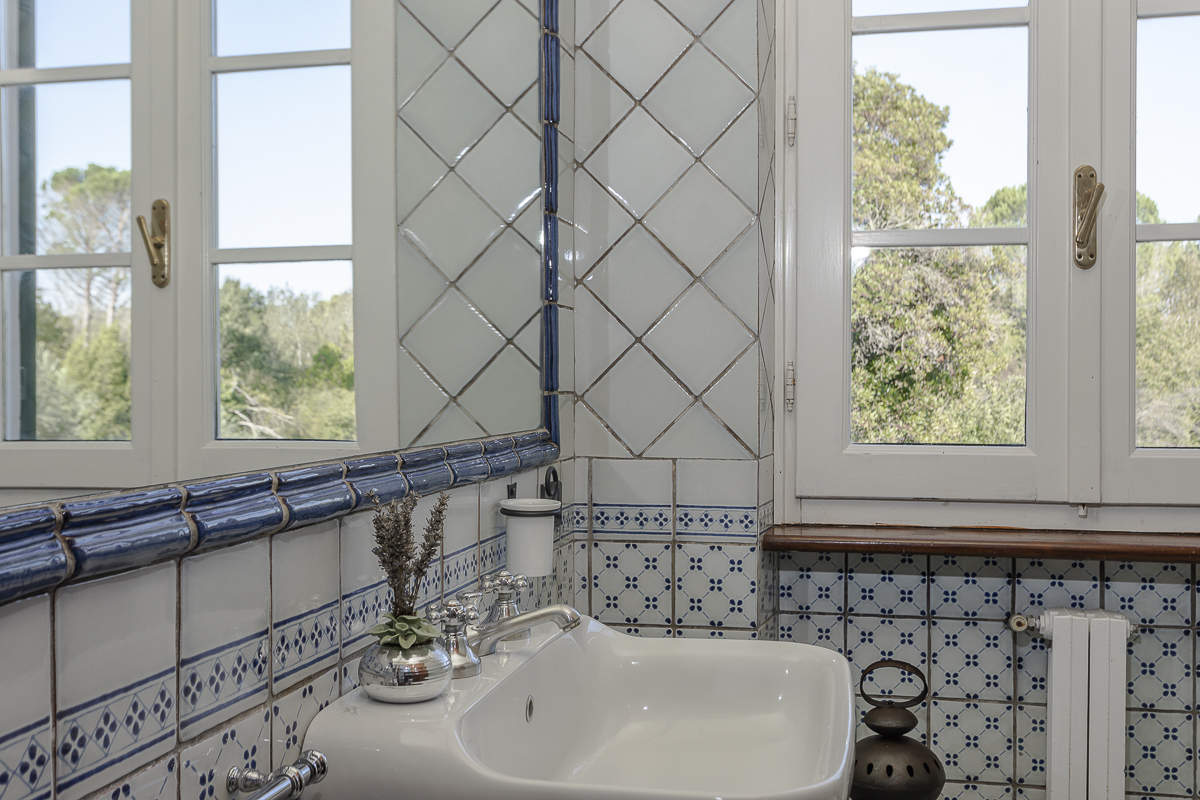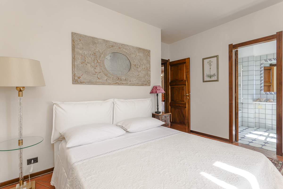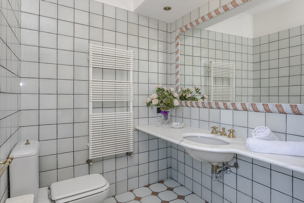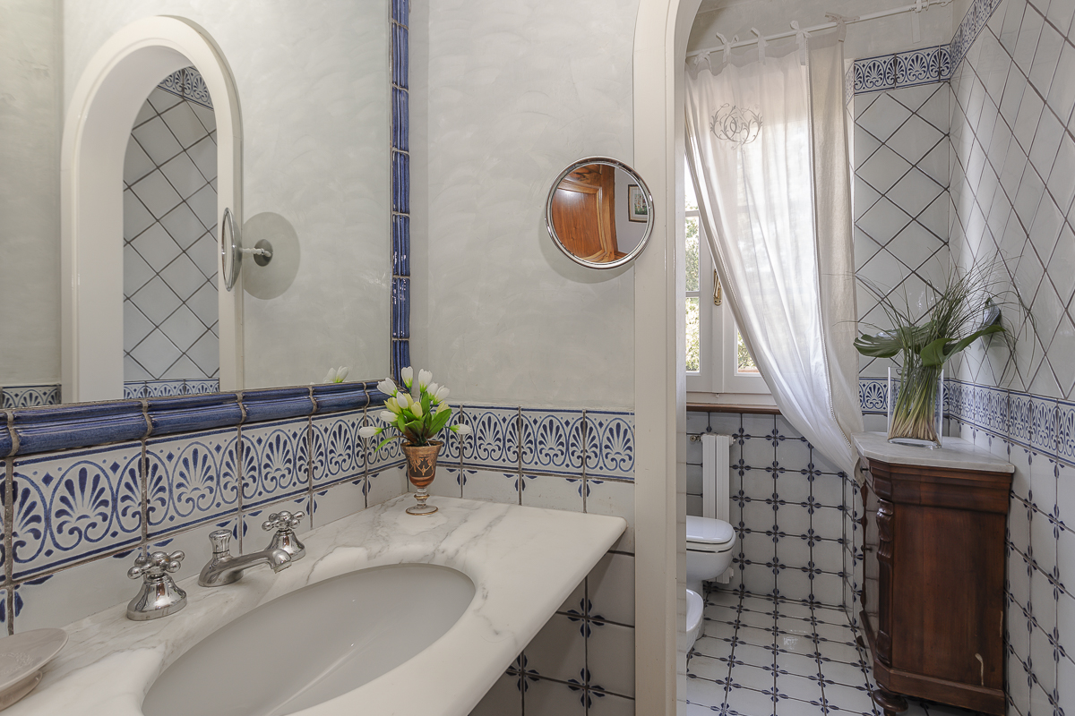 Also on the floor we find a double bedroom with private bathroom with shower. In this area also a bath service near the kitchen and a room with a single bed with private bathroom, possibly used by a maid or babysitter.