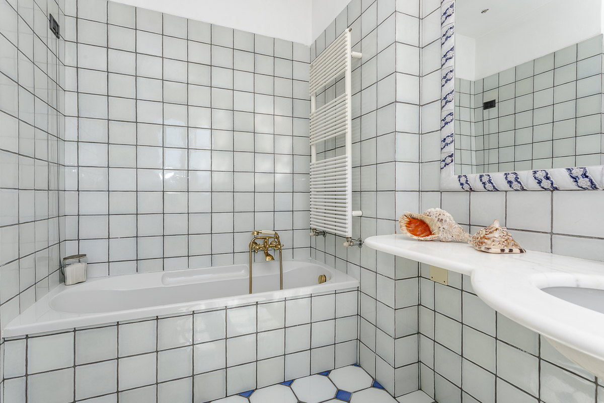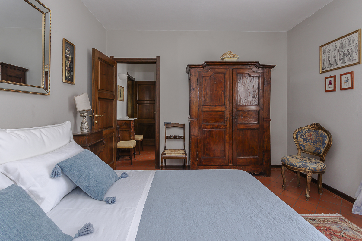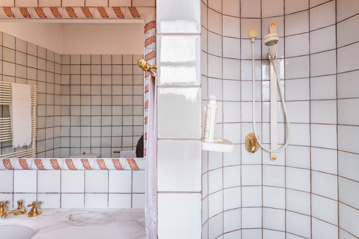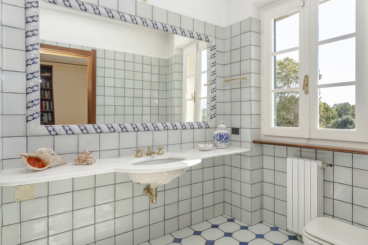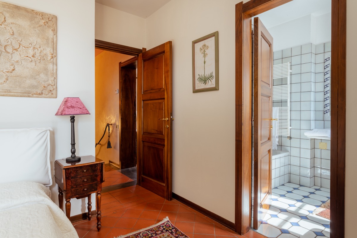 Also on the floor we find a double bedroom with private bathroom with shower. In this area also a bath service near the kitchen and a room with a single bed with private bathroom, possibly used by a maid or babysitter.